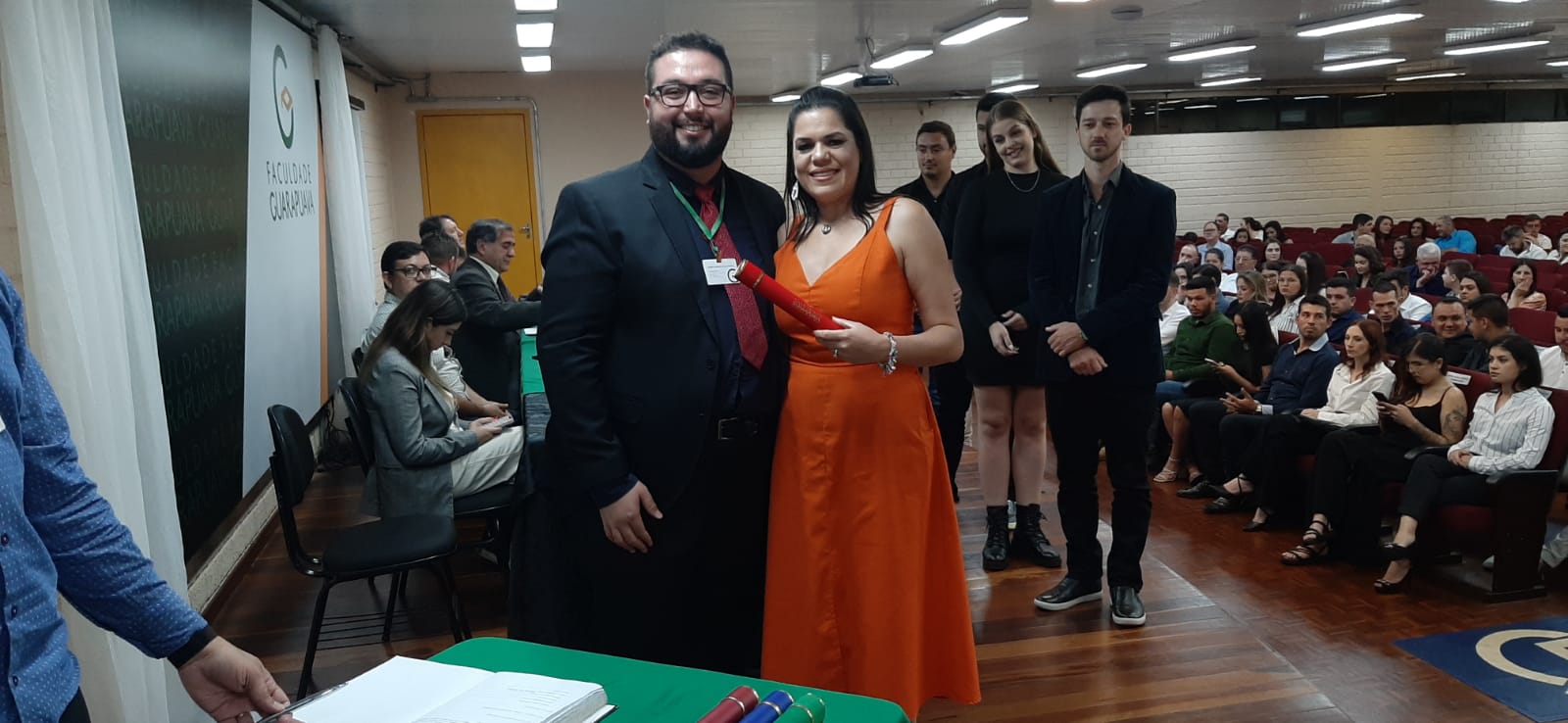 A solenidade, realizada no auditório principal da faculdade, contou com a presença de autoridades acadêmicas, familiares e amigos dos formandos.